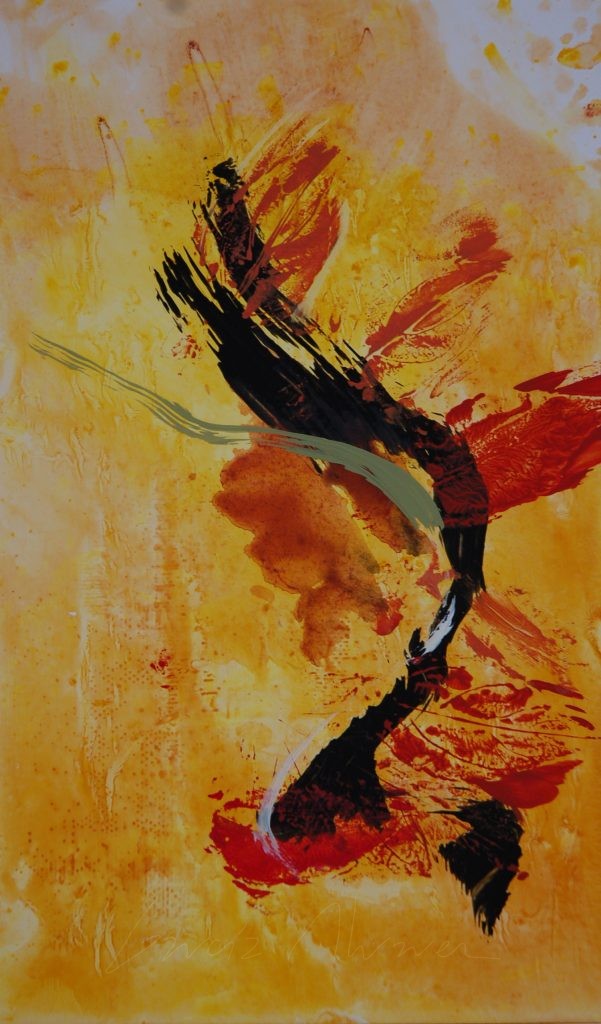 Los cinco arces del jardín son protagonistas diarios de mi mirada, su dimensión es ya desbordante y eso se agradece en Verano. Una imagen tan poderosa que he ido pintando a lo largo de los años acompañándolo en su crecimiento y en su transformación con las estaciones. Desde el primer momento en que decidí ponerme a pintarlos creí que un icono que forma parte del día a día tenia que colaborar y participar de una forma importante en la obra, por eso cuando llega el Otoño nunca recojo las hojas del suelo y las dejo como un abrigo para el césped durante el Invierno produciendo un cambio de color en el paisaje. Es justo en ese momento en el que encuentro la forma en que el Arce podía participar directamente en los cuadros , solo tenia que recoger alguna hojas añadirle color y hacer estampaciones con ellas. Toda la obra sobre lienzo y sobre papel de las Series Arce están hechas de esta forma.