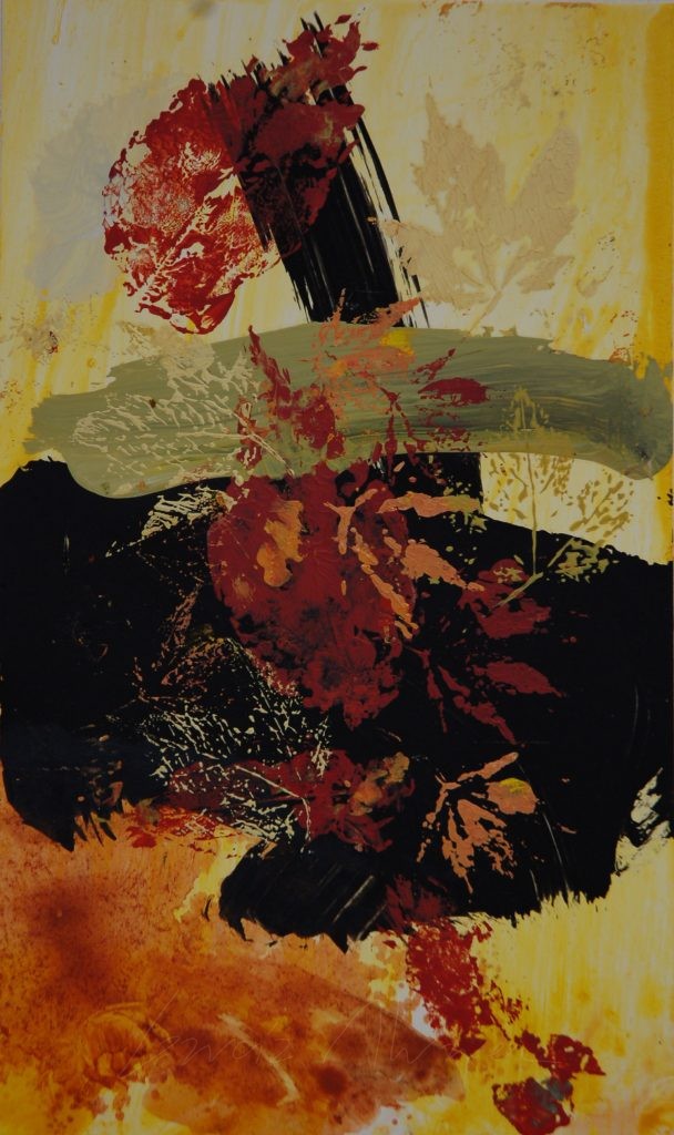 Los cinco arces del jardín son protagonistas diarios de mi mirada, su dimensión es ya desbordante y eso se agradece en Verano. Una imagen tan poderosa que he ido pintando a lo largo de los años acompañándolo en su crecimiento y en su transformación con las estaciones. Desde el primer momento en que decidí ponerme a pintarlos creí que un icono que forma parte del día a día tenia que colaborar y participar de una forma importante en la obra, por eso cuando llega el Otoño nunca recojo las hojas del suelo y las dejo como un abrigo para el césped durante el Invierno produciendo un cambio de color en el paisaje. Es justo en ese momento en el que encuentro la forma en que el Arce podía participar directamente en los cuadros , solo tenia que recoger alguna hojas añadirle color y hacer estampaciones con ellas. Toda la obra sobre lienzo y sobre papel de las Series Arce están hechas de esta forma.