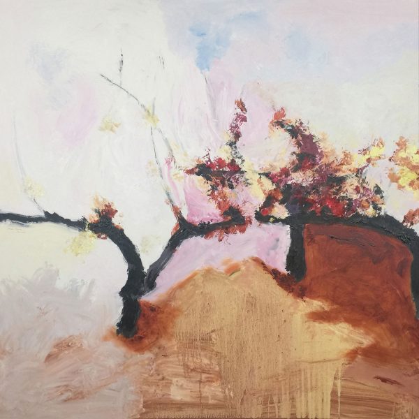 Deseaba visitar la Rioja en otoño y ver de cerca ese paisaje que había soñado. Una explosión de color que me fue atrapando a medida que adentraba en ese espacio deseado. Amarillos , rojos, óxidos y violetas. Al regresar al estudio comienzo a pintar esas primeras imágenes que me van a servir para buscar el camino y encontrar el lenguaje que me ayude a representar las sensaciones recibidas , pronto comienzan a fluir unas imágenes ordenadas. Un gran paisaje de “Viñedos”. Dos soportes de lienzo para este proceso , uno de 100 x 100 cm y otro de 100 x 120 cm. Nueve lienzos que aunque tienen identidad propia forman un conjunto de diez metros de largo por un metro de alto. Un cuadro que nace en la Finca Ygay en las viñas de Marqués de Murrieta. Una aventura que me ha servido para adentrarme en un mundo apasionante.
