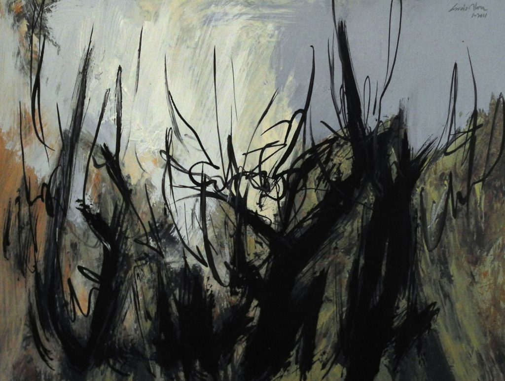 Una de las pocas Series que he realizado solo sobre papel, el soporte ideal para conseguir el resultado al que quería llegar. El reflejo de unas sensaciones producidas como casi siempre al atardecer, ese momento mágico que solo encuentro en la luz que se produce en ese momento en que cae el Sol en los paseos por un espacio cercano. Troncos negros violáceos con un fondo de luz cegadora.