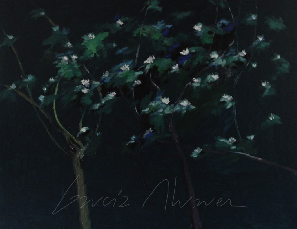 El membrillero lo he pintado en todas las estaciones, lo he pintado sobre lienzo y lo he dibujado con el iPad. No esta en mi jardín y ya casi no lo veo, lo he pintado pero nunca lo he visto completo, es una imagen robada a un vecino, a veces me he subido a una escalera para ver un poco mas, nunca he querido verlo completo ni le he pedido que me dejara pasar a verlo, lo he preferido así y en este momento ya casi ha desaparecido porque mis árboles lo han ocultado pero se que esta ahí y lo recuerdo para pintarlo cuando quiera.