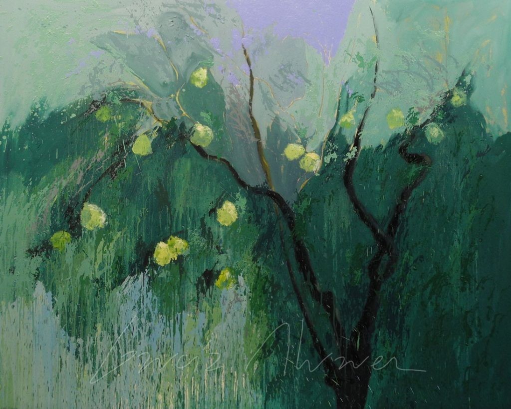 El membrillero lo he pintado en todas las estaciones, lo he pintado sobre lienzo y lo he dibujado con el iPad. No esta en mi jardín y ya casi no lo veo, lo he pintado pero nunca lo he visto completo, es una imagen robada a un vecino, a veces me he subido a una escalera para ver un poco mas, nunca he querido verlo completo ni le he pedido que me dejara pasar a verlo, lo he preferido así y en este momento ya casi ha desaparecido porque mis árboles lo han ocultado pero se que esta ahí y lo recuerdo para pintarlo cuando quiera.