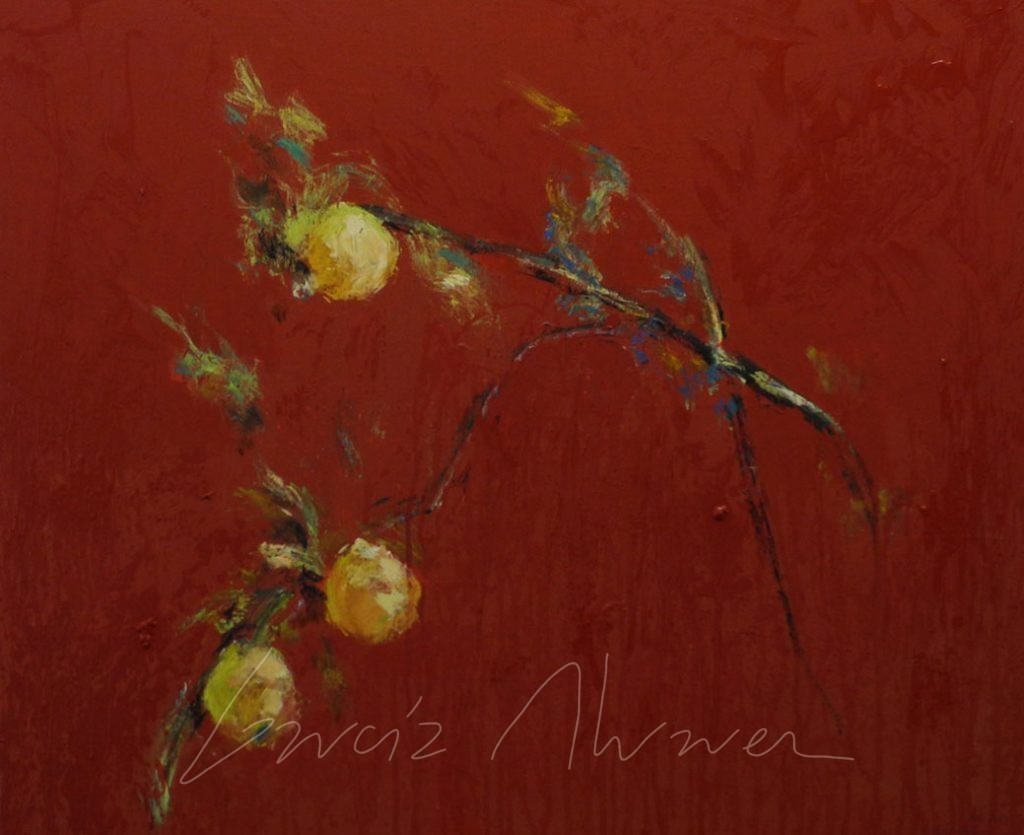 El membrillero lo he pintado en todas las estaciones, lo he pintado sobre lienzo y lo he dibujado con el iPad. No esta en mi jardín y ya casi no lo veo, lo he pintado pero nunca lo he visto completo, es una imagen robada a un vecino, a veces me he subido a una escalera para ver un poco mas, nunca he querido verlo completo ni le he pedido que me dejara pasar a verlo, lo he preferido así y en este momento ya casi ha desaparecido porque mis árboles lo han ocultado pero se que esta ahí y lo recuerdo para pintarlo cuando quiera.